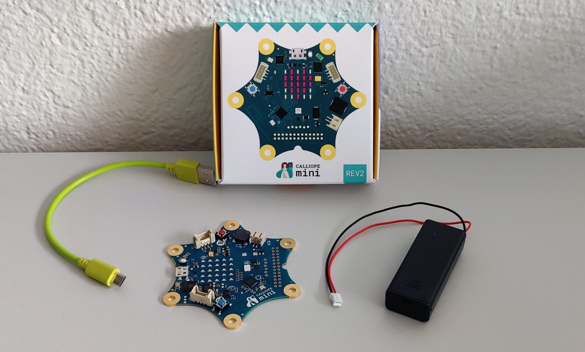 Ein Mikrocontroller mit vielen Möglichkeiten - das ist der Calliope mini. Er ist ausgestattet mit unterschiedlichen Komponenten, die gesteuert werden können: von Sensordaten zum Auslesen über LEDs und Steuerung von Tönen sowie den Anschluss von Motoren ermöglicht der Calliope verschiedenste Anwendungen. Damit er ausführt, was man ihm sagt, gibt es eine eigene Programmierumgebung. In diese werden die Programme geschrieben, die im Anschluss an den Calliope mini übertragen werden.