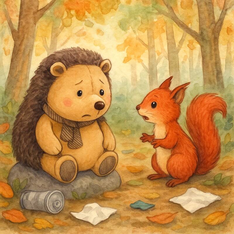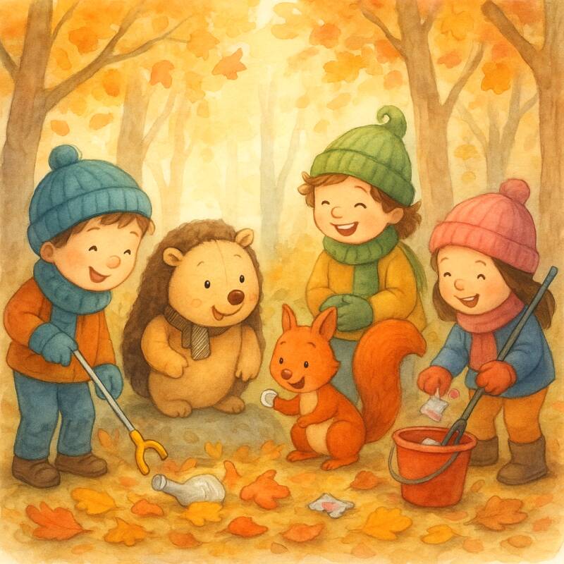 Der Herbst ist da und Igel Ilma sucht ein kuschliges Zuhause unter dem Laub, findet aber überall nur Müll. Auch Fips, das kleine Eichhörnchen, findet kein schönes Plätzchen mehr. Sie wissen keinen Rat. Da hören sie Kinderstimmen im Wald.
